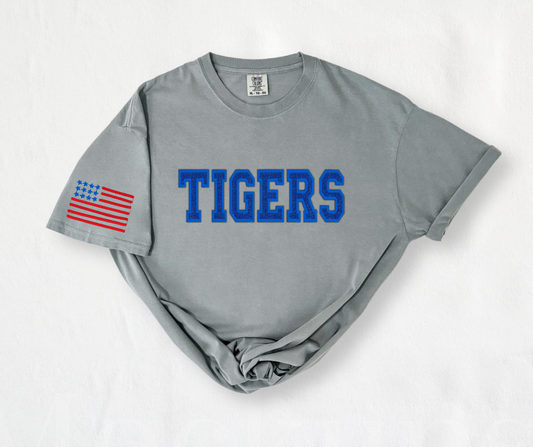 Regular price $44.00 USDRegular priceUnit price / perSale price $44.00 USDAll Star Glitter Spirit Tee-Embroidered + Sleeve Flag Design