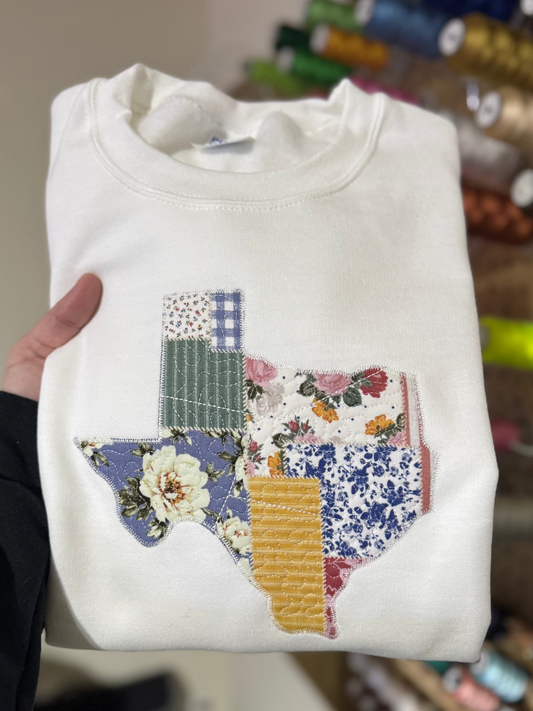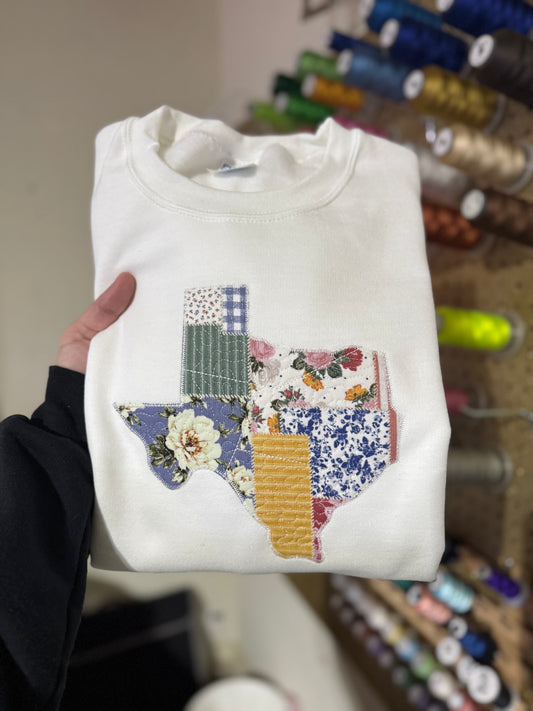 QUILTED PATCHWORK STATE Sweatshirt- Embroidered- Choose State