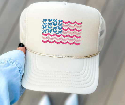 RED, WHITE, AND BOWS -Embroidered Trucker - Perfect for 4th of July