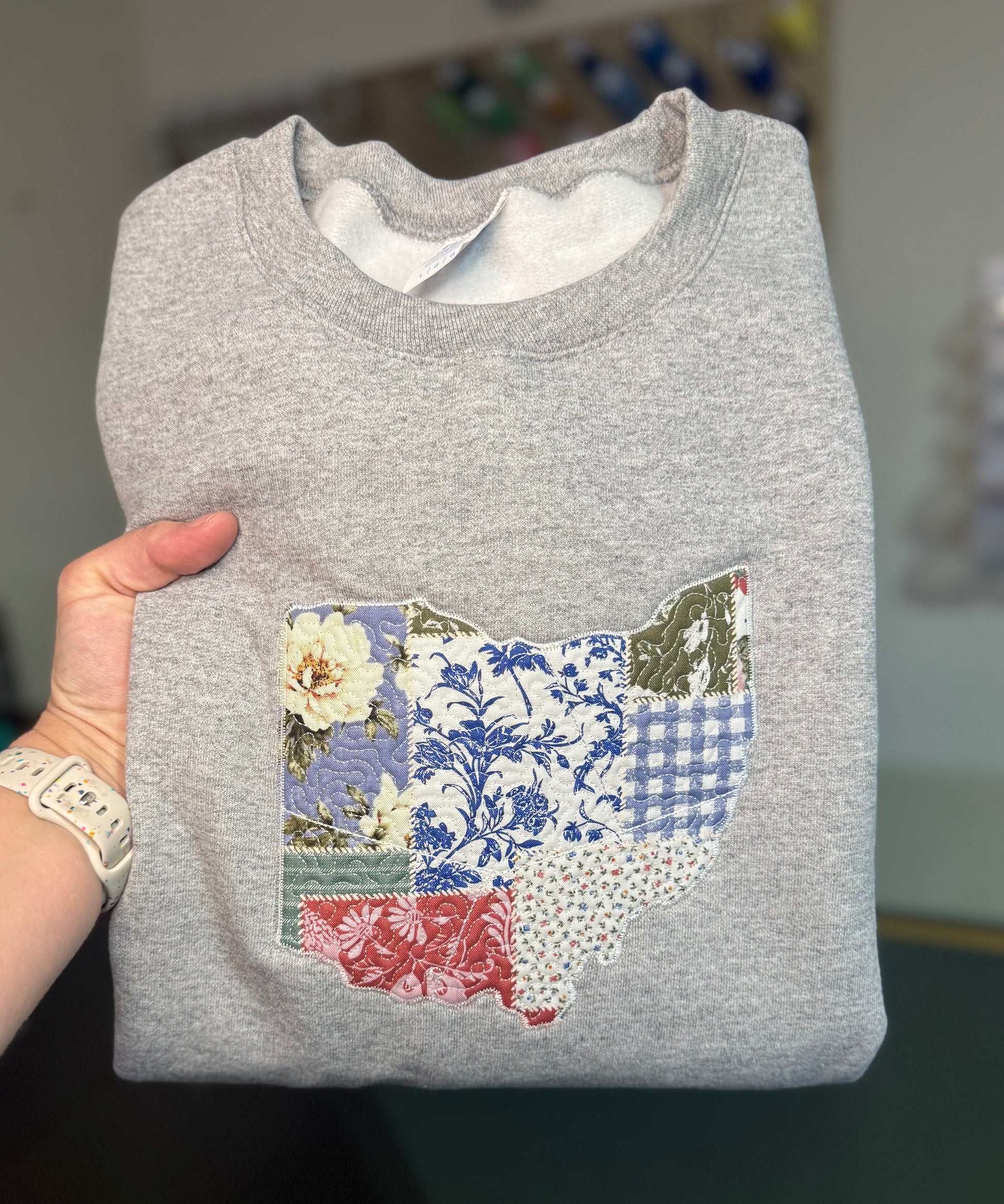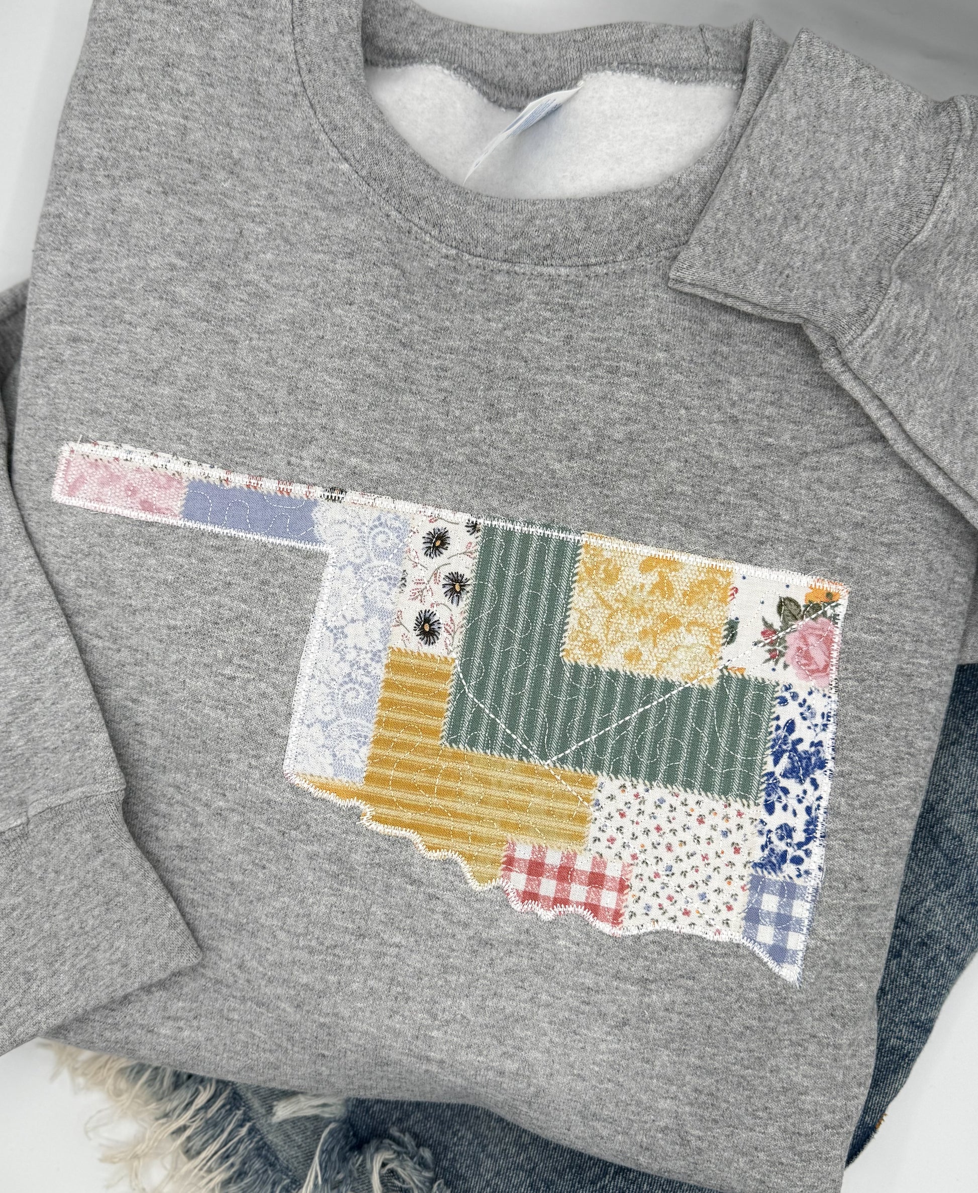 QUILTED PATCHWORK STATE Sweatshirt- Embroidered- Choose State